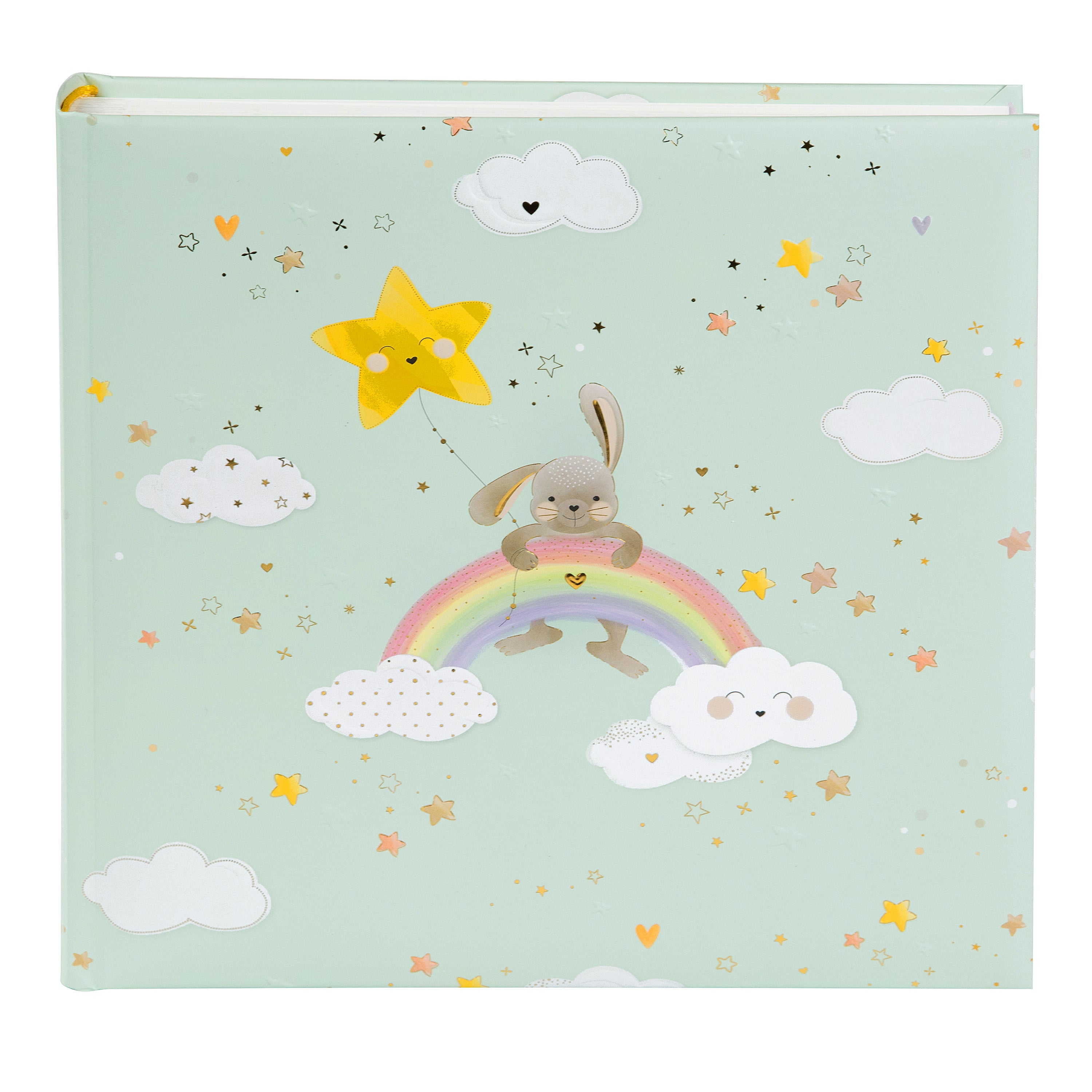 Ein kleiner Hase, sanfte Wolken und ein strahlender Regenbogen – das Fotoalbum My Rainbow fängt die schönsten Momente des Lebens auf liebevolle Weise ein. Das verspielte Design in zarten Pastellfarben mit goldenen Akzenten verleiht dem Album eine warme, fröhliche Ausstrahlung – perfekt als Geschenk zur Geburt, zur Taufe oder für die schönsten Erinnerungen an die ersten Lebensjahre.