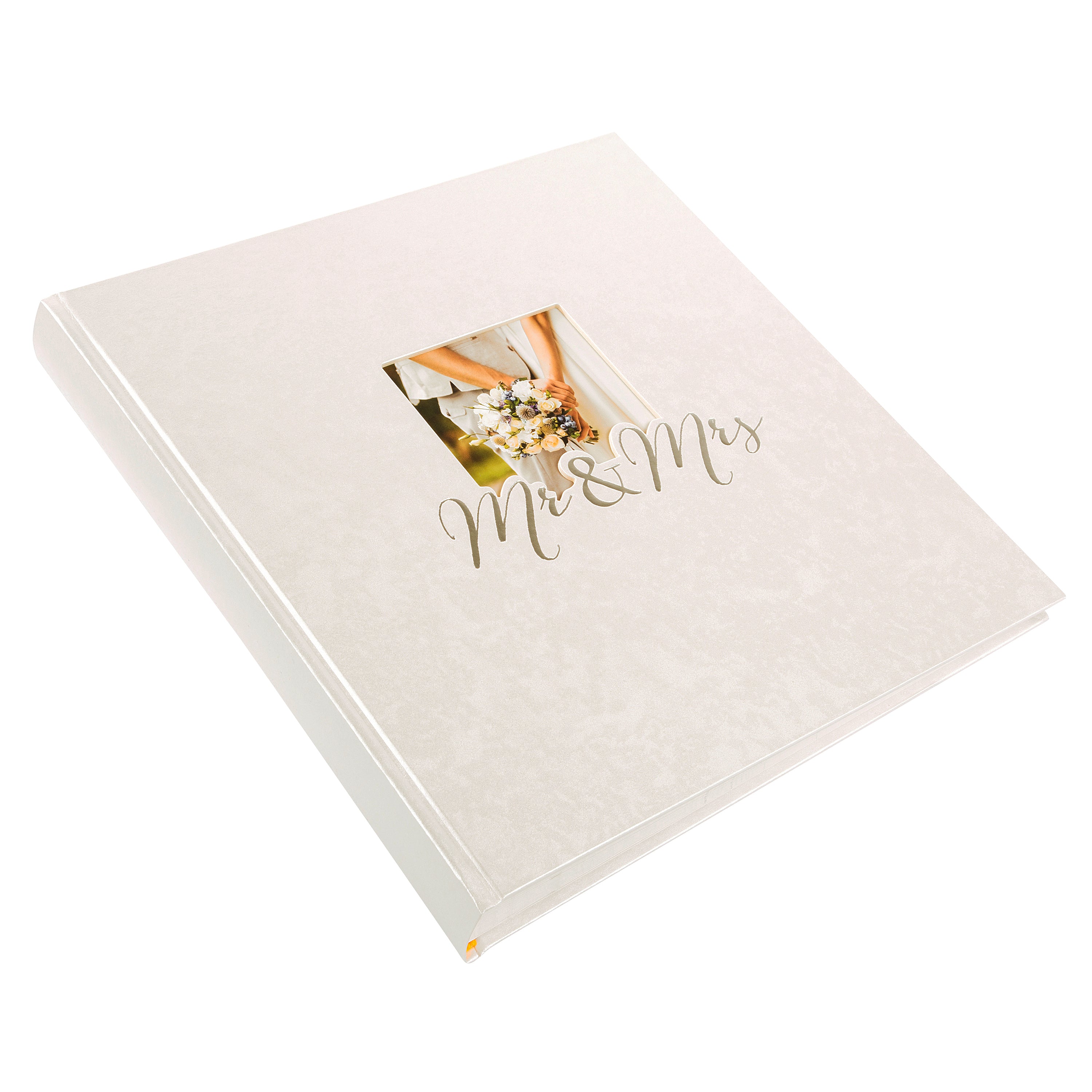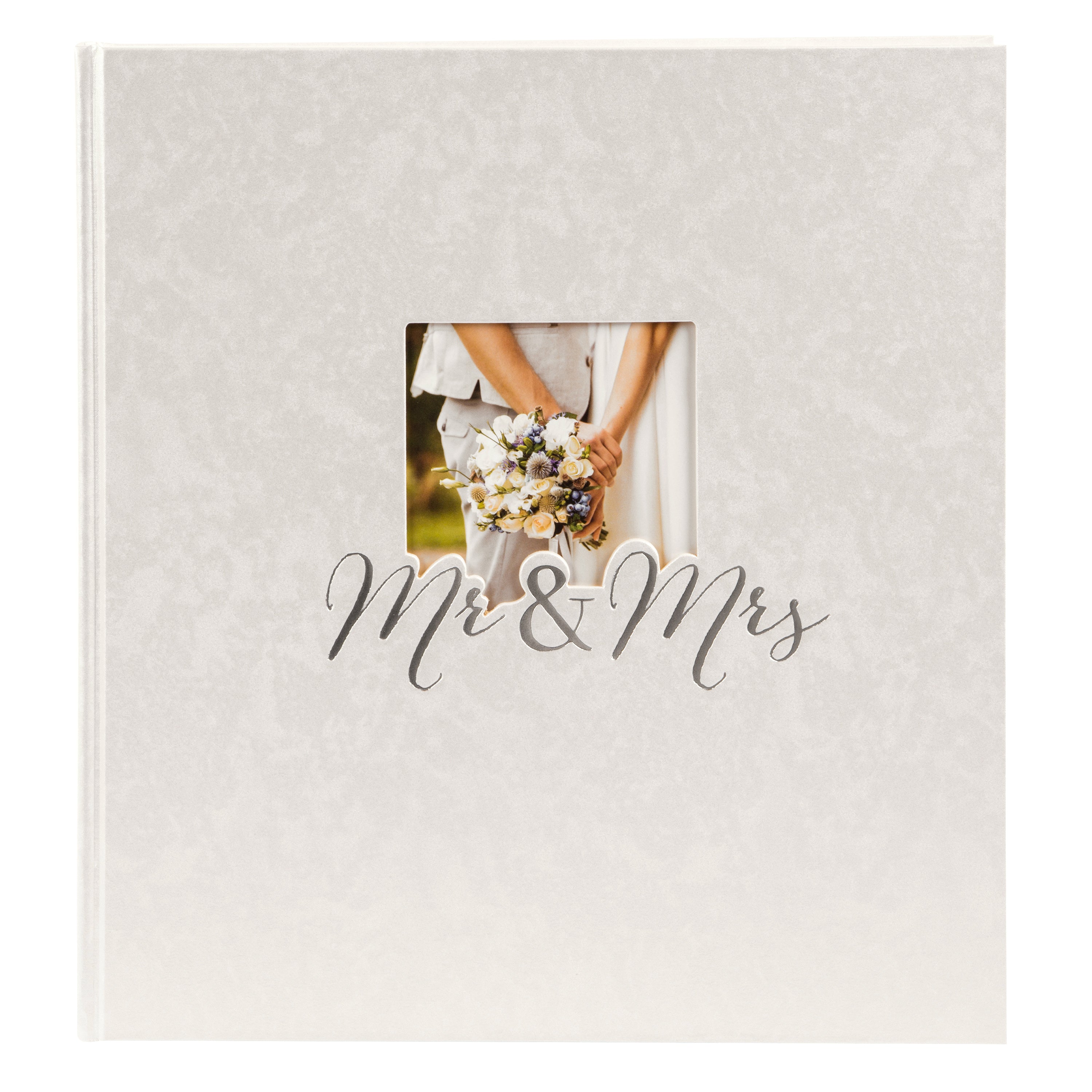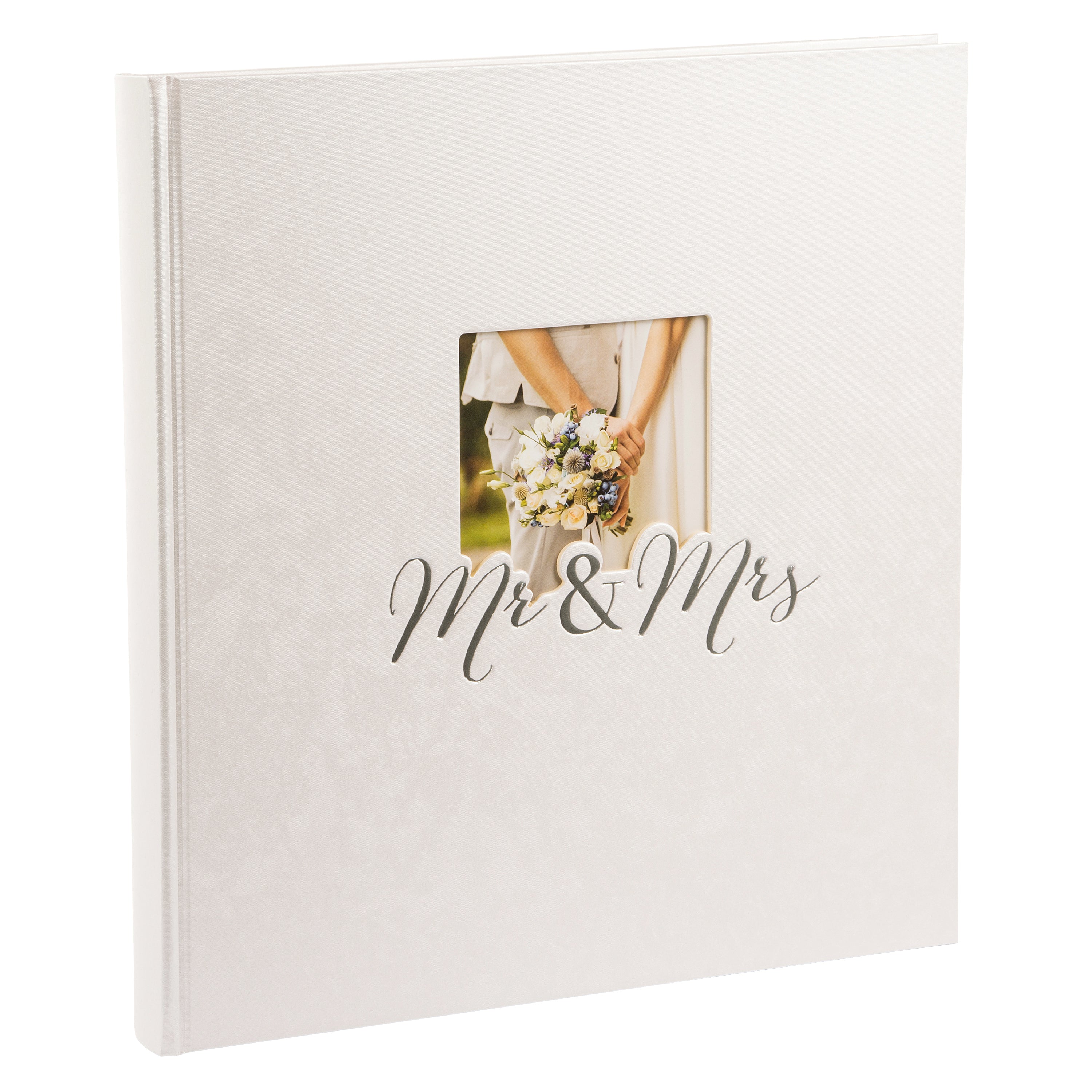 Der edle Einband aus veredeltem Papier verleiht dem Album einen dezenten Schimmer und sorgt für eine besonders angenehme Haptik. Der stilvolle Schriftzug „Mr. & Mrs.“ ist in hochwertiger Silberprägung aufgebracht und unterstreicht den festlichen Charakter des Albums. Besonders persönlich wird es durch den Bildausschnitt auf dem Cover – hier lässt sich ein eigenes Foto einfügen und das Album ganz individuell gestalten.