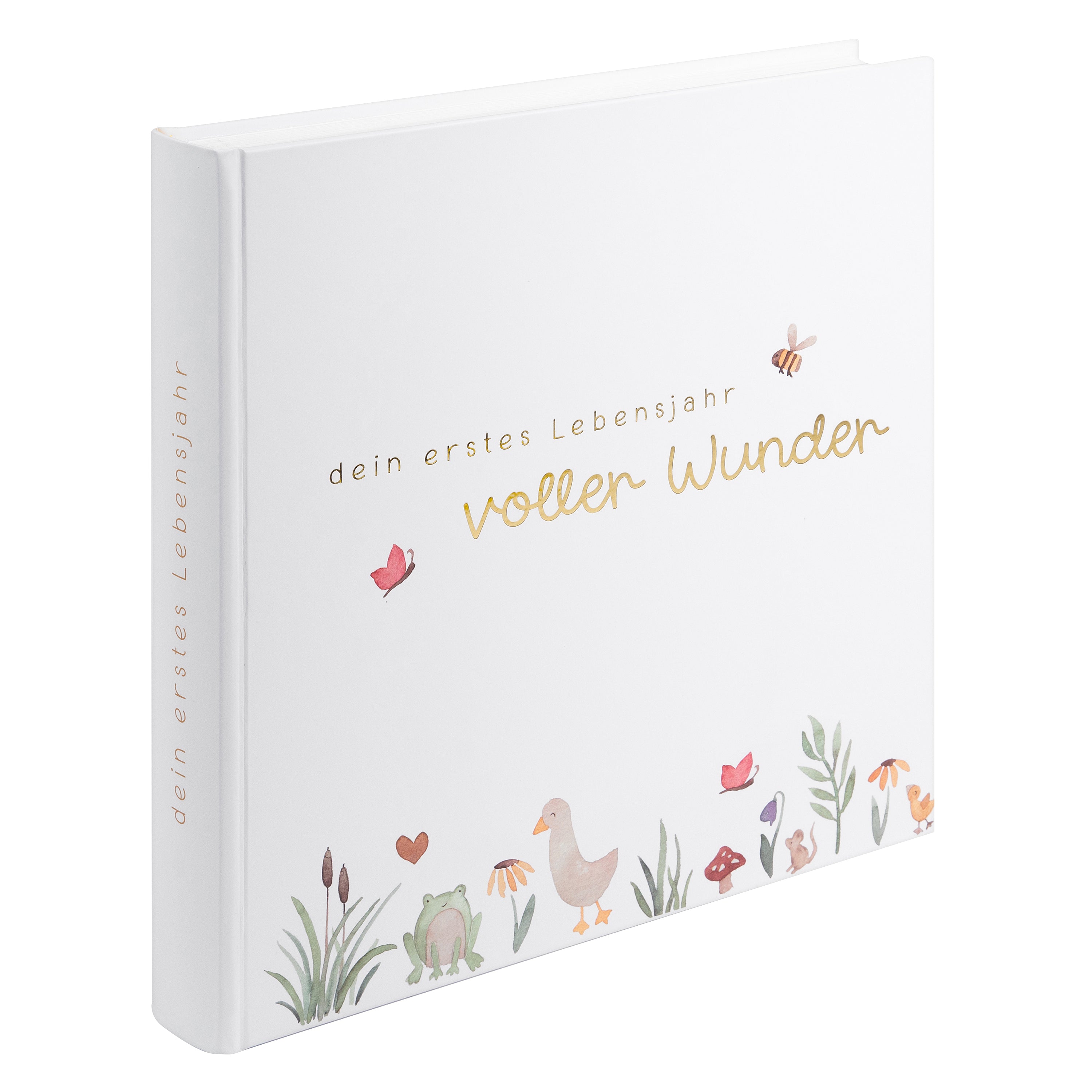 Der hochwertige Kunstdruckeinband mit feiner Prägung macht das Album nicht nur optisch zu einem Highlight, sondern auch spürbar besonders. Im großzügigen Format von 30 × 31 cm bietet es auf 58 stabilen Seiten aus festem Fotokarton viel Platz für Fotos, kleine Andenken und persönliche Einträge – eine liebevolle Dokumentation des ersten Lebensjahres.