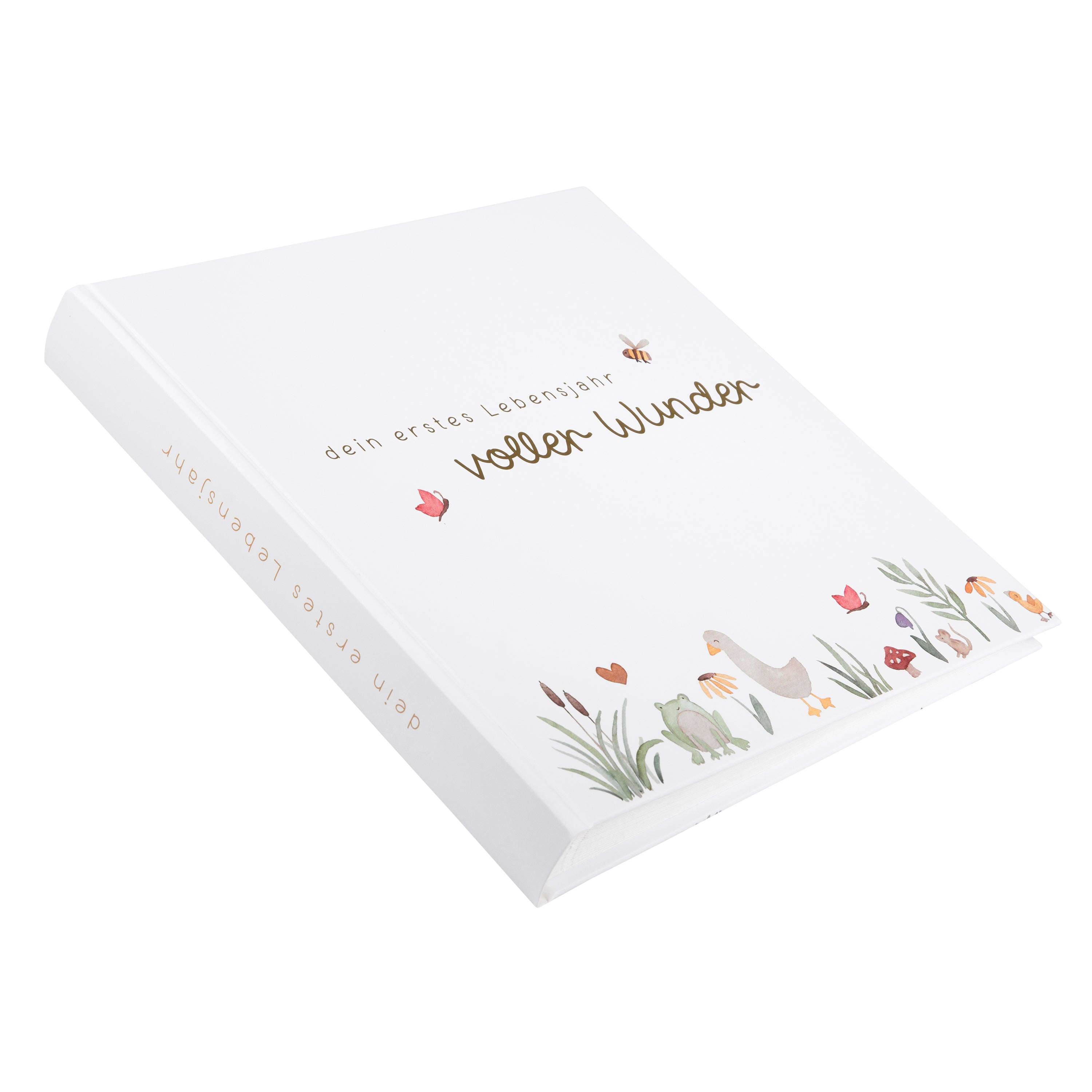 Das Babyalbum „voller Wunder – Wiese“ feiert die kleinen Momente des Lebens mit einer sanften, naturnahen Gestaltung. Auf dem zart illustrierten Cover tummeln sich Sonnenschein, Gräser, Schmetterlinge und feine Blüten, die dem Album Leichtigkeit und Wärme verleihen. Erhältlich in den harmonischen Farbvarianten Weiß, Altrosa und Salbei, strahlt dieses Album eine natürliche Eleganz aus – perfekt für alle, die Stil, Gefühl und Qualität miteinander verbinden möchten.