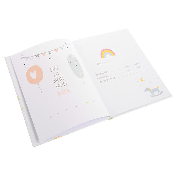 The 21x28 cm baby diary offers parents an easy way to record important moments in the baby's life. With around 44 pages full of illustrations, you can enter things like eye, height and weight data at birth, special events and relevant caregivers. This gift is perfect for parents, grandparents, uncles, aunts or godparents. The baby diary is sure to bring joy!