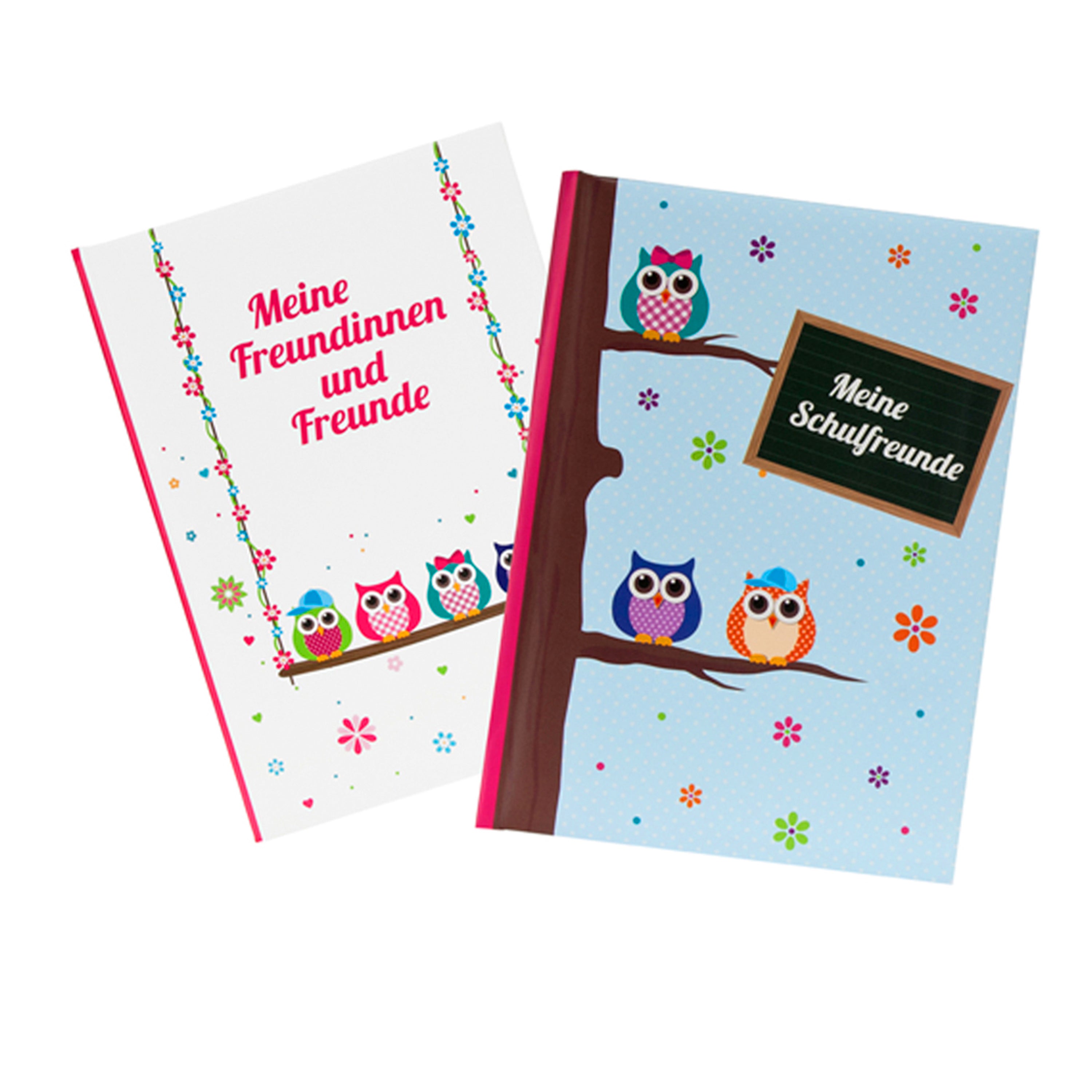Dieses Freundebuch Eule wird von niedlichen Eulen auf der Vorderseite verziert. Der Schriftzug 'Meine Freundinnen und Freunde' oder 'Meine Schulfreunde' rundet die gekonnte Optik dieses schönen Freundebuchs ab und lädt zum Eintragen ein. Das Freundebuch präsentiert sich im Format DIN A5 und besitzt im Innenteil 88 illustrierte Seiten. Auf diesen können sich Freundinnen und Freunde mit persönlichen Eintragungen sowie einem Foto verewigen. In der Schulzeit knüpfen Kinder zahlreiche neue Kontakte und Freundschaften entstehen. Die liebsten Freundinnen und Freunde finden in diesem schönen Buch einen Platz – für ein Andenken der besonderen Art.